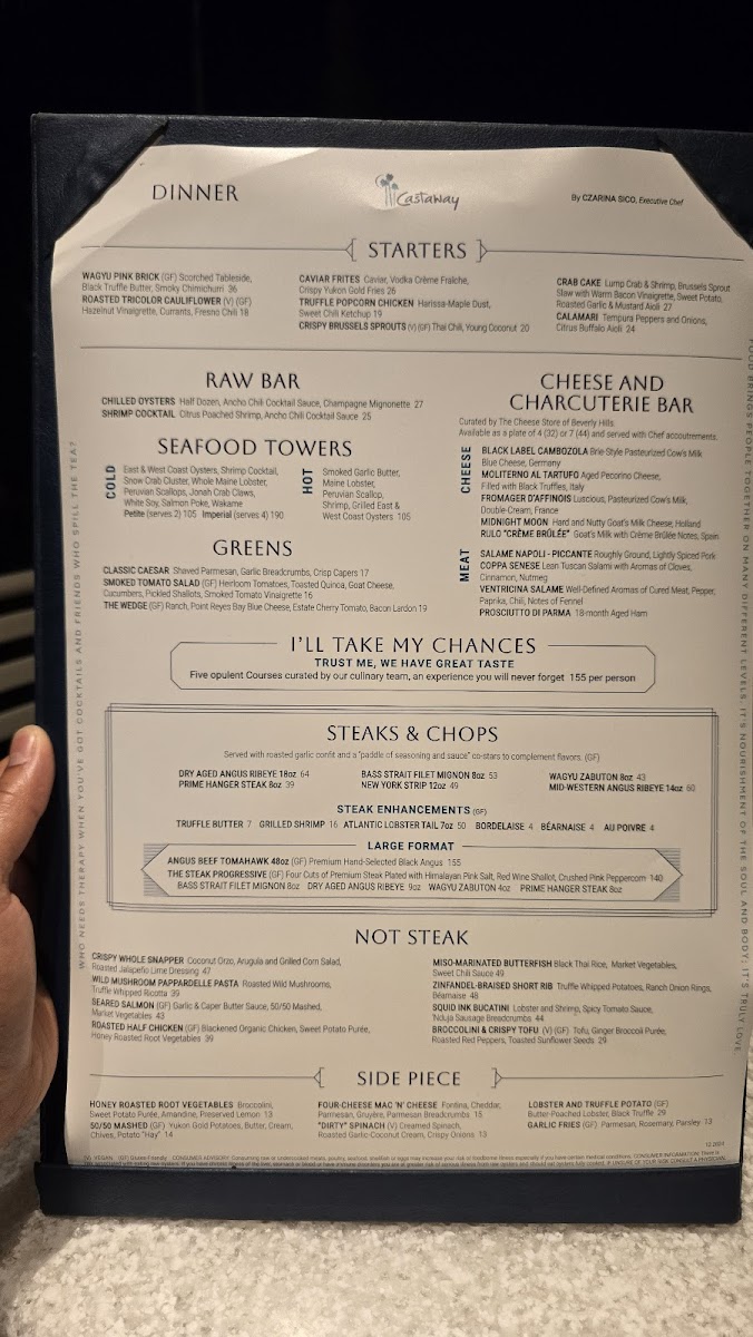 At Castaway, the culinary offerings are nothing short of impressive. The menu features an array of tempting options, reflecting a mastery of steakhouse tradition infused with a contemporary twist. A must-try is the Midwestern Angus Ribeye, a 14oz marvel that promises a juicy, rich flavor in every bite, priced at $60. Alternatively, indulge in the velvety Bass Strait Filet Mignon, lovingly presented at $52. Each steak is meticulously cooked to perfection, guaranteed to satisfy even the most discerning palates.